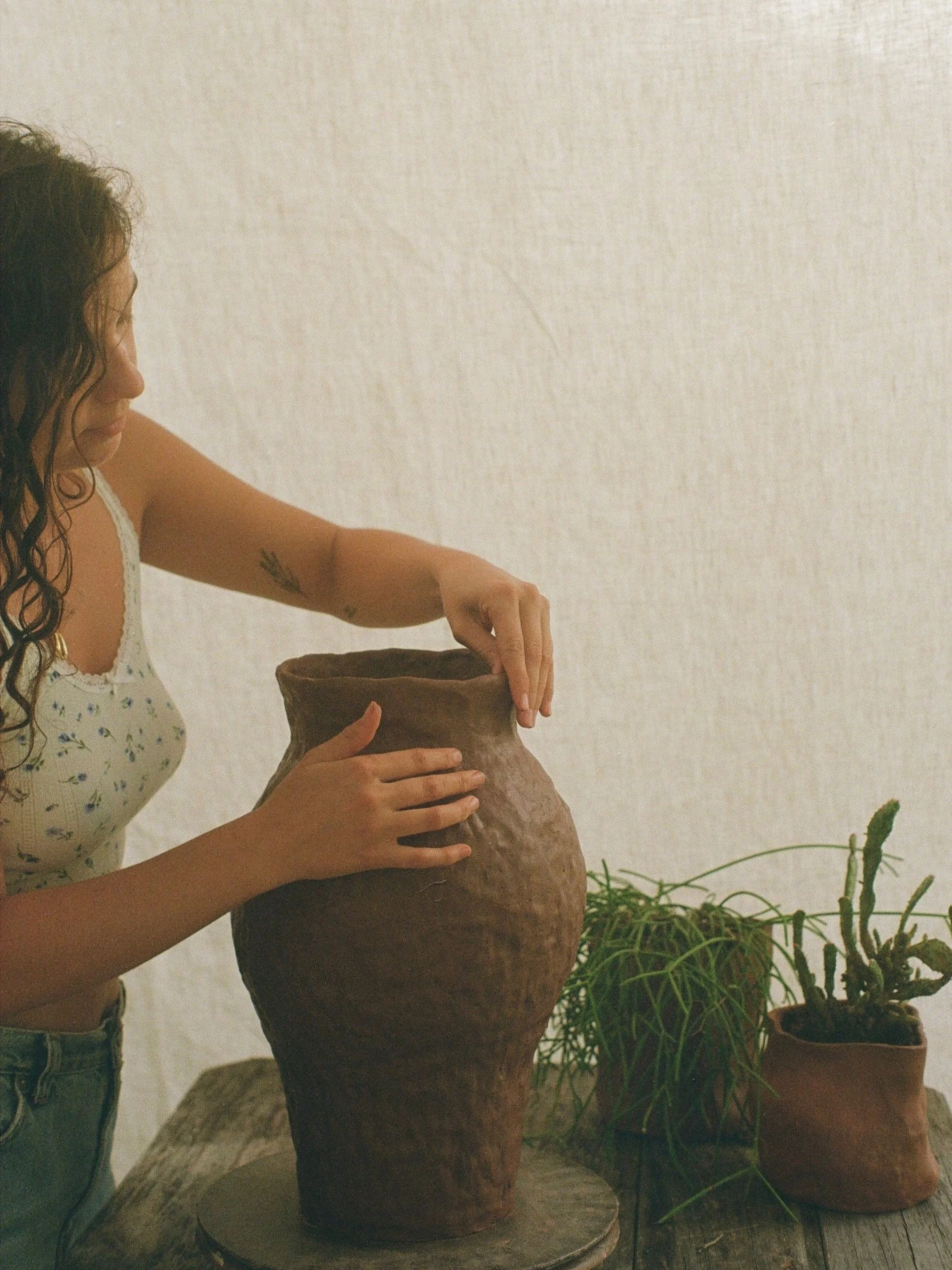 Hi! Iām Erica. A Miami native, artist, and huge nature lover. Ever since I was a little girl, I spent any chance I could making arts and crafts or helping my mom and dad grow fruits and vegetables in our garden. This always meant getting my hands dirty, just like when I work with clay! I graduated with a BFA in Studio Arts from the University of North Carolina at Chapel Hill. I currently work out of my barn turned pottery studio. Through hosting ceramic workshops and creative experiences, I offer my community a chance to connect, tap into their creativity, and ground through intentional living. Thank you for being here, I am so grateful to share my art with you.